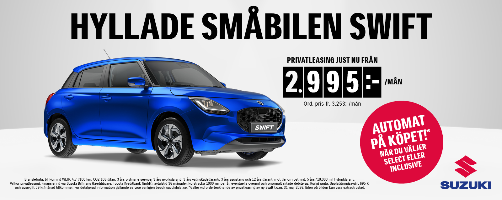 Kampanjen gäller vid ordertecknande av privatleasing av ny Swift fr.o.m. 5 jan 2026 t.o.m. 31 maj 2026.*